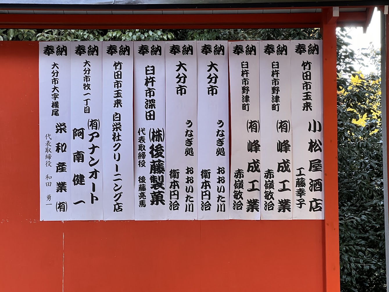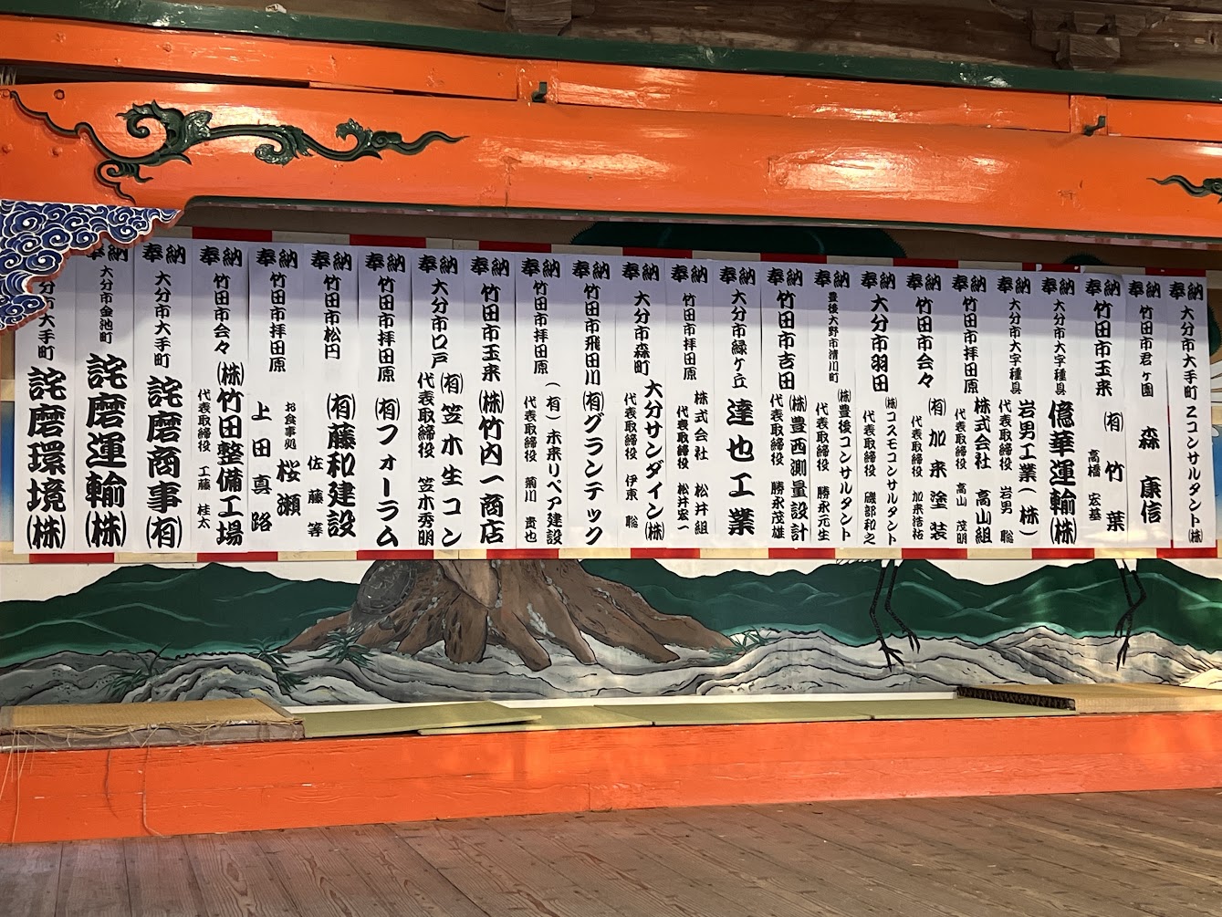 掲示について: ご奉納後、準備が整い次第、社名・氏名を神楽殿に掲示させていただきます。