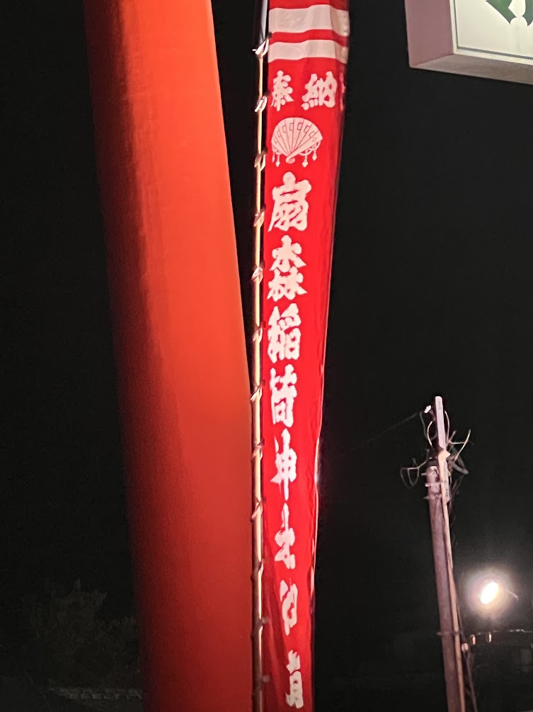 大鳥居の脇に、幟(のぼり)旗が掲揚されました。